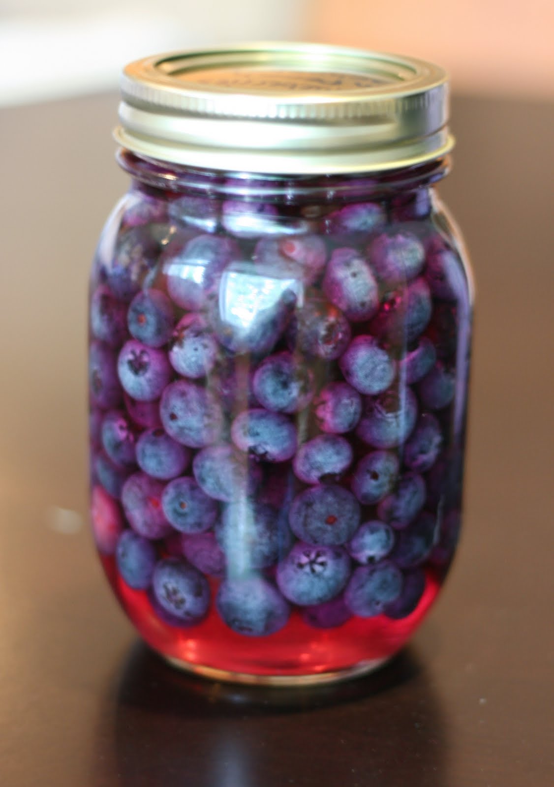 Next I preserved fresh, local blueberries in Peach Schanpps! This time I used a 500ml canning jar. I rinsed the blueberries and picked through them to remove stems, leaves and any unripe ones. I filled the jar with blueberries (just under 2 cups), added 1/4 cup of sugar and topped it all off with enough Peach Schnapps to cover the fruit and fill the jar.