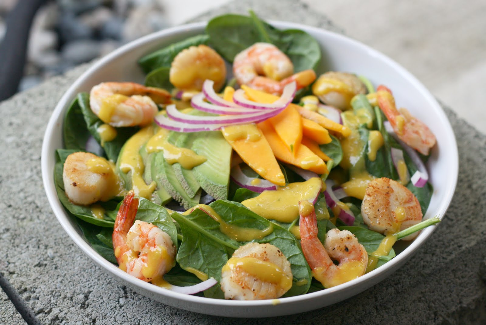 Eat hot off the grill topped with mango salsa and grilled veggies, or slice and serve warm or cold over spinach salad. Top your salad with the left over Tropical BBQ sauce.